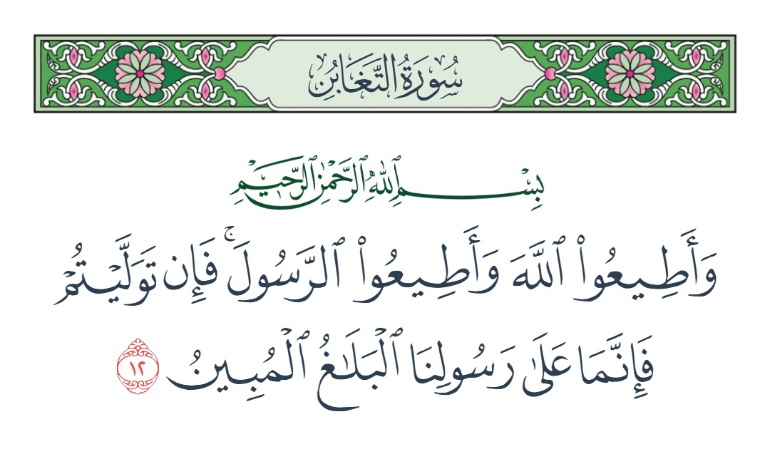 وأطيعوا الله وأطيعوا الرسول فإن توليتم فإنما على رسولنا البلاغ المبين [التغابن : 12]