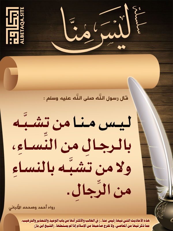 ليس منا من تشبه بالرجال من النساء ، و لا من تشبه بالنساء من الرجال