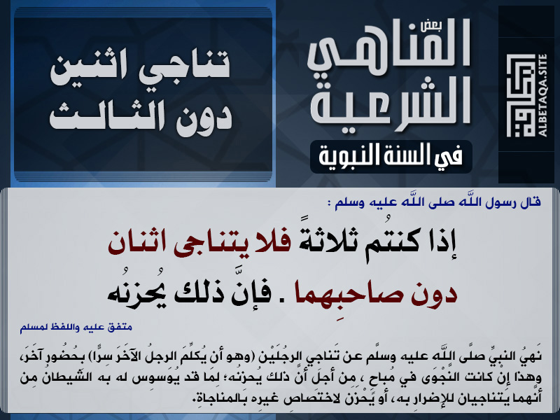 بعض المناهي الشرعية في السنة النبوية – تناجي اثنين دون الثالث