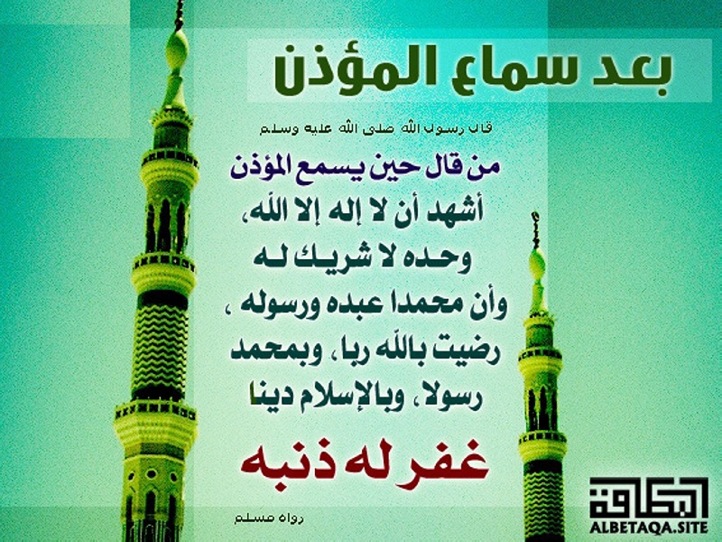 من قال حسن يسمع المؤذن أسهد أن لا إله إلا الله ، وحده لا شريك له وأن محمدا عبده ورسوله ، رضيت بالله ربا ، وبمحمد رسولا ، وبالإسلام دينا غفر له ذنبه
