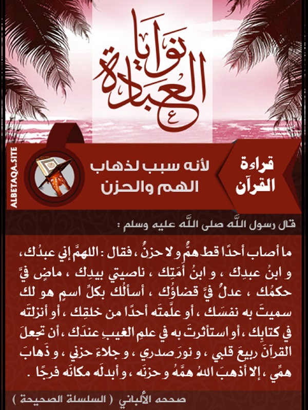 نوايا العبادة – قراءة القرآن – لأنه سبب لذهاب الهم والحزن