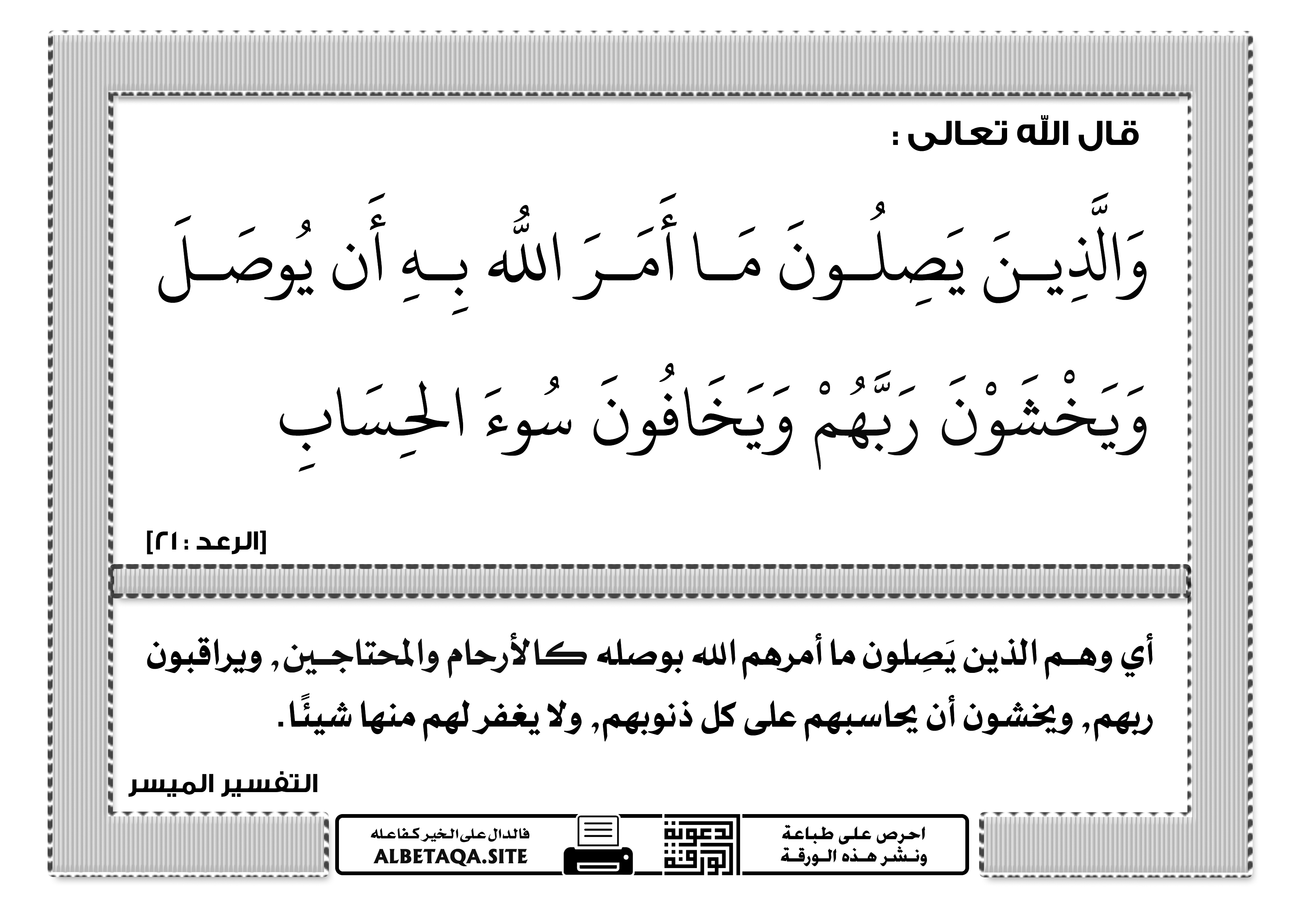 أي وهم الذين يصلون ما أمرهم الله بوصله كالأرحام والمحتاجين, ويراقبون ربهم, ويخشون أن يحاسبهم على كل ذنوبهم, ولا يغفر لهم منها شيئا.