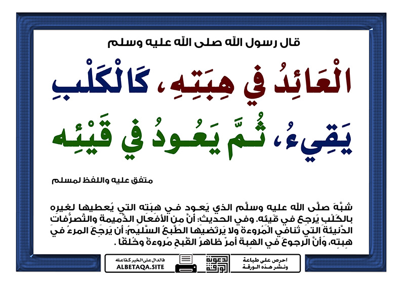 العائد في هبته، كالكلب يقيء، ثم يعود في قيئه
