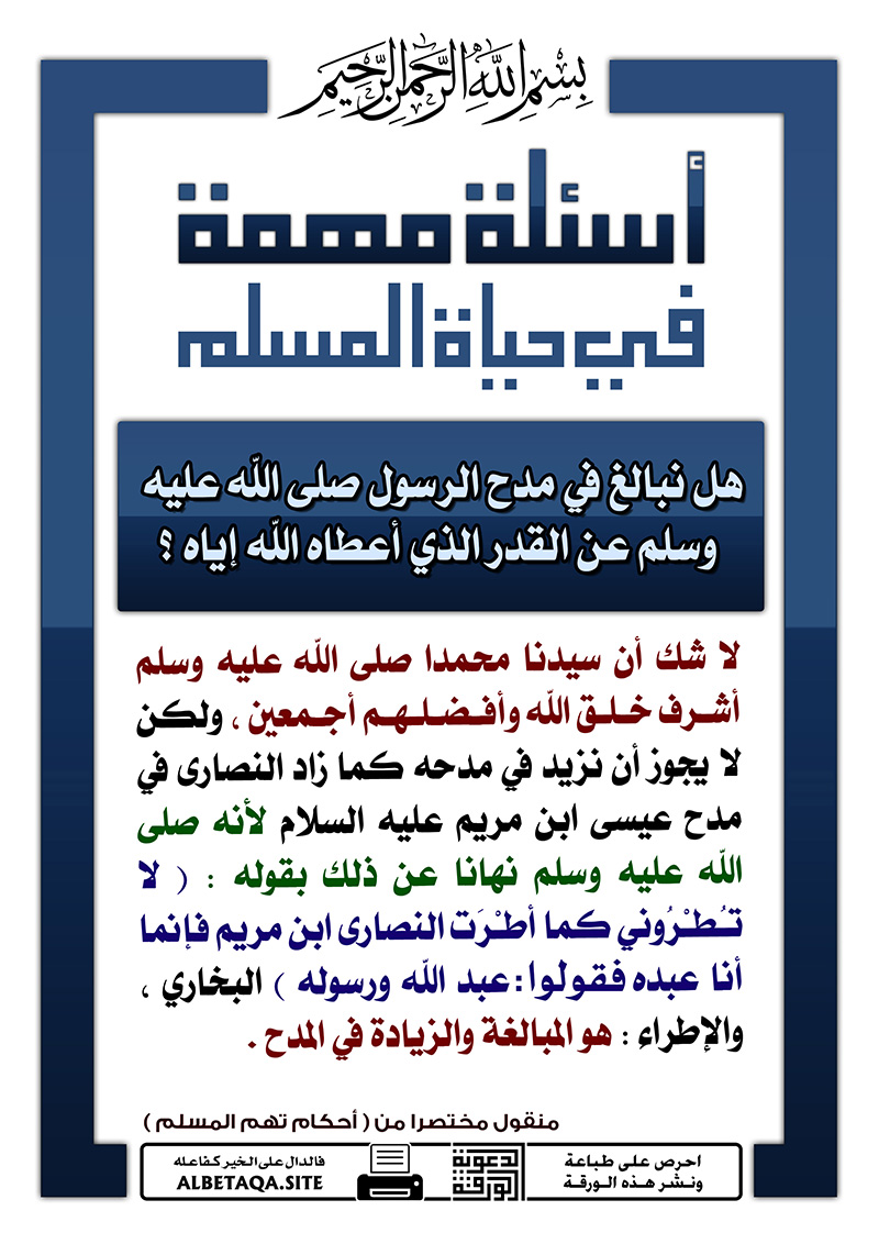 أسئلة مهمة في حياة المسلم – هل نبالغ في مدح الرسول صلى الله عليه وسلم عن القدر الذي أعطاه الله إياه ؟