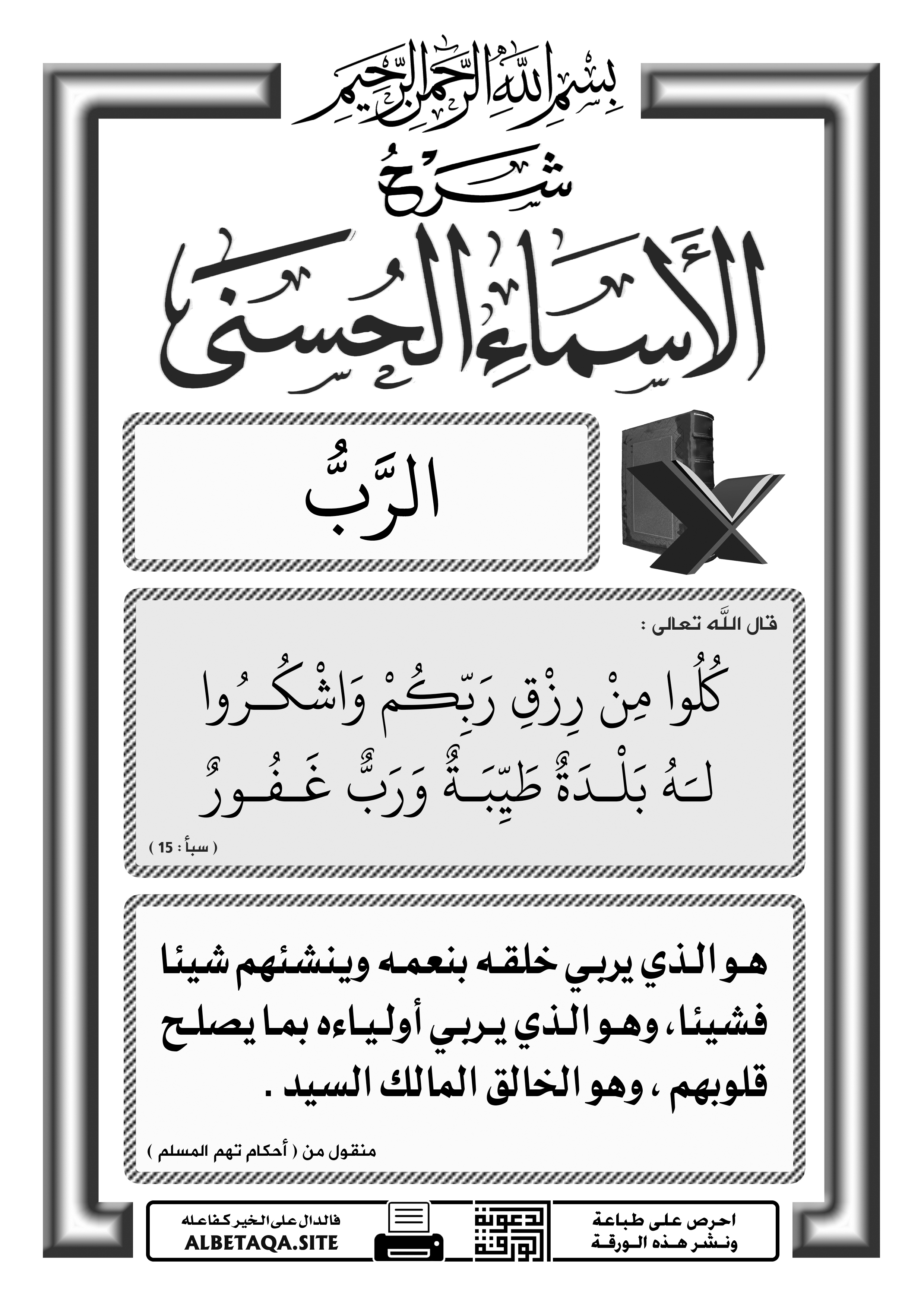 هو الذي يربي خلقه بنعمه وينشئهم شيئا فشيئا ، وهو الذي يربي أولياءه بما يصلح قلوبهم ، وهو الخالق المالك السيد .