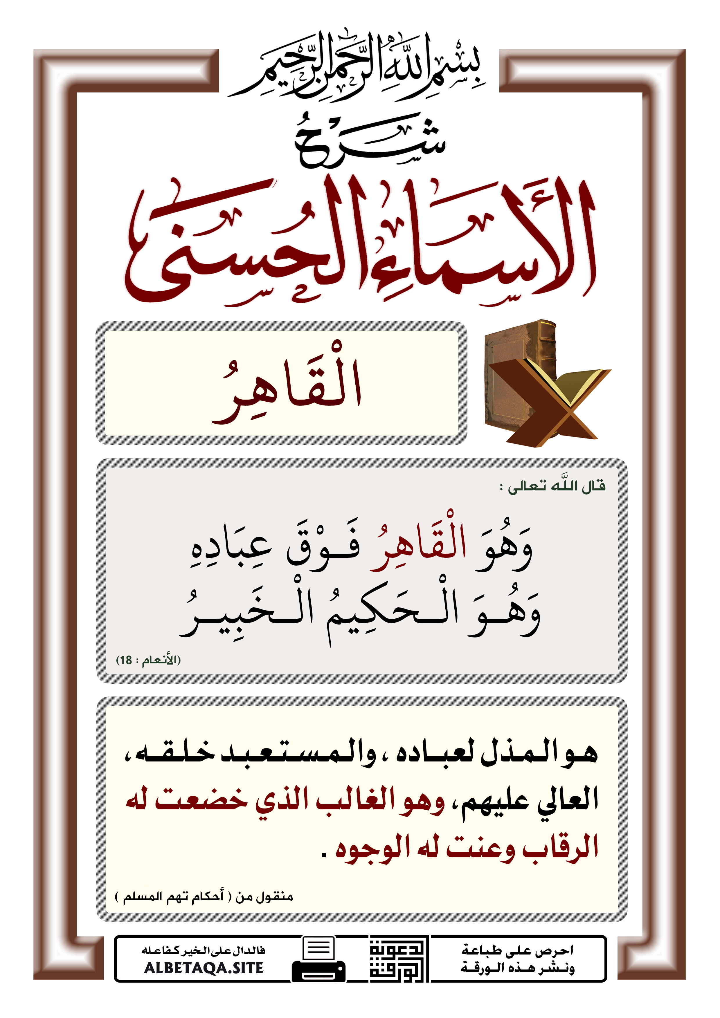 شرح الأسماء الحسنى – القاهر
