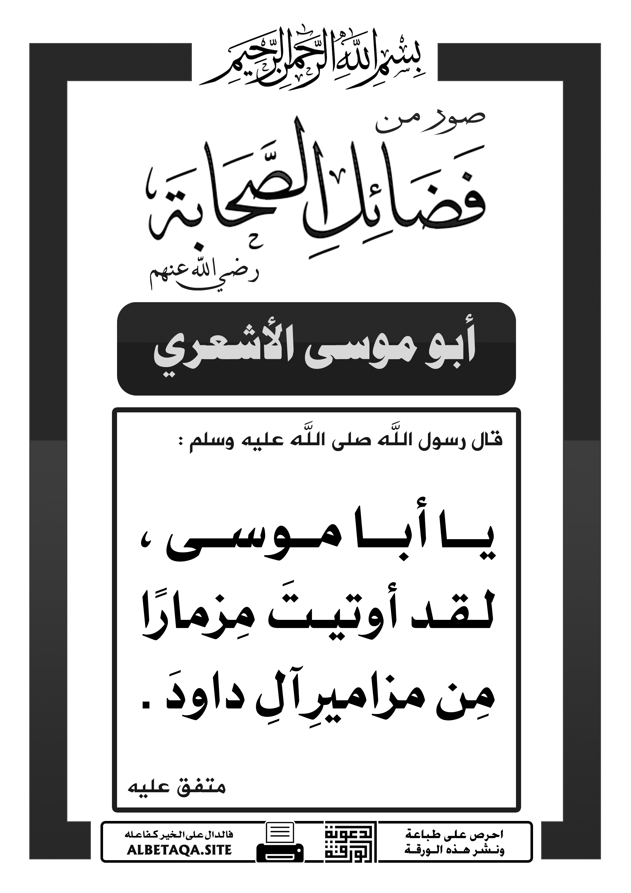 يا أبا موسى ، لقد أوتيت مزمارا من مزامير آل داود