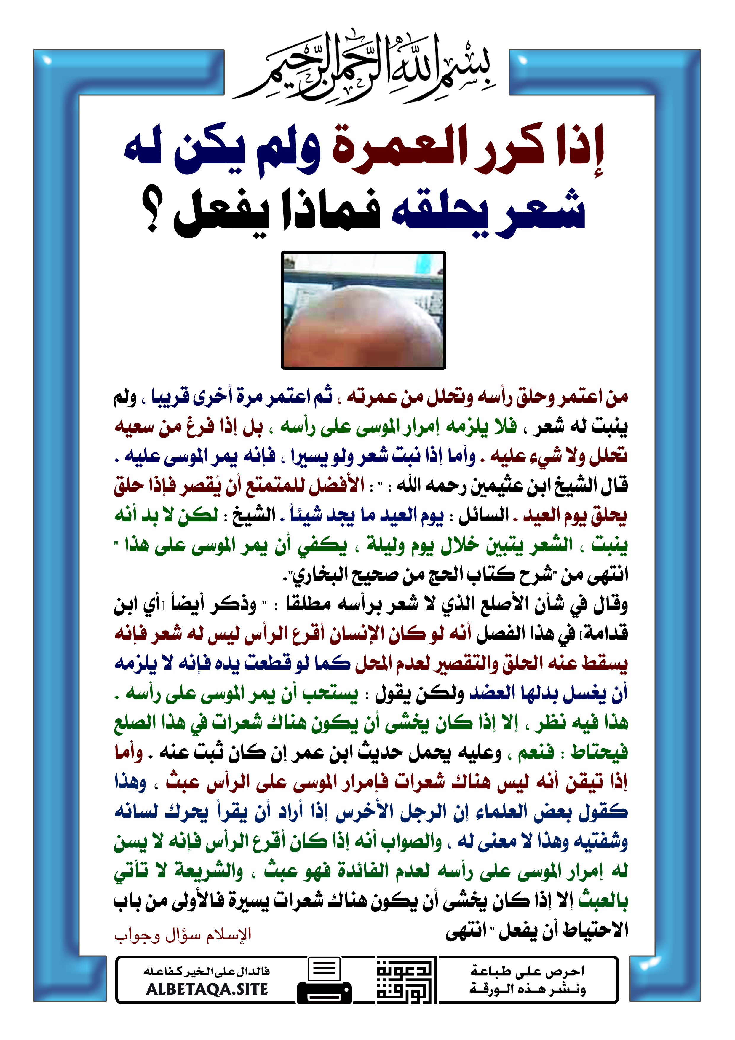 إذا كرر العمرة ولم يكن له شعر يحلقه فماذا يفعل ؟
