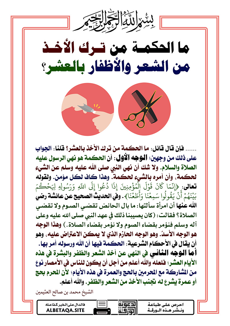 ما الحكمة من ترك الأخذ من الشعر والأظفار بالعشر؟