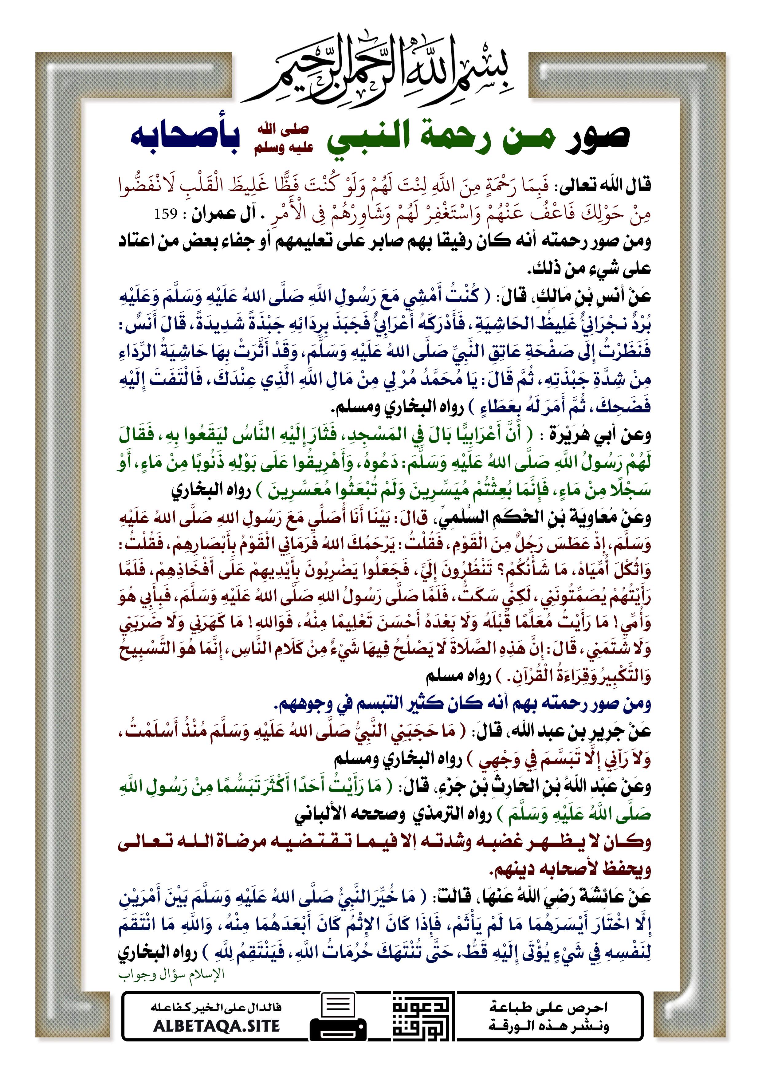 صور من رحمة النبي صلى الله عليه وسلم بأصحابه