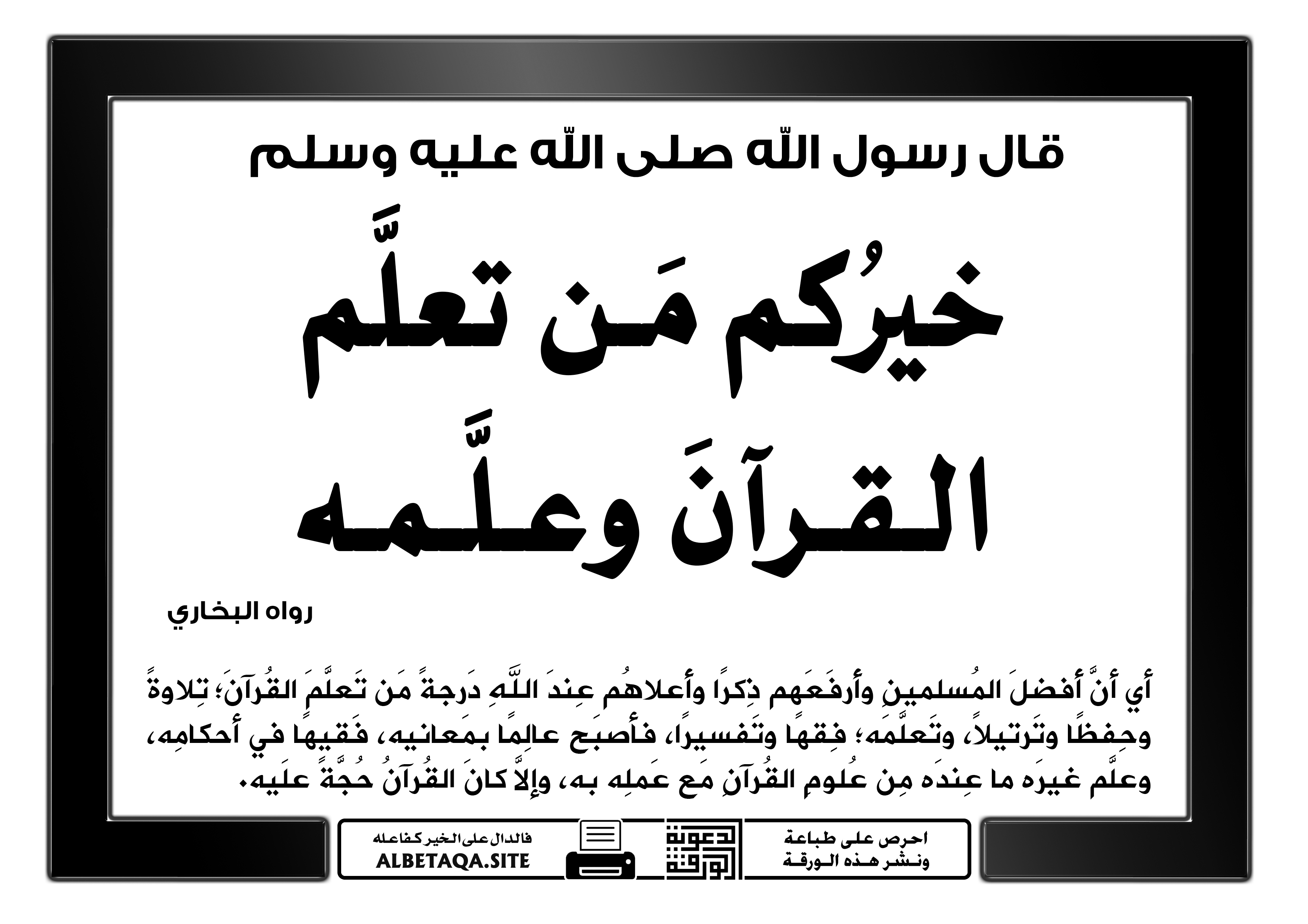 خيركم من تعلم القرآن وعلمه